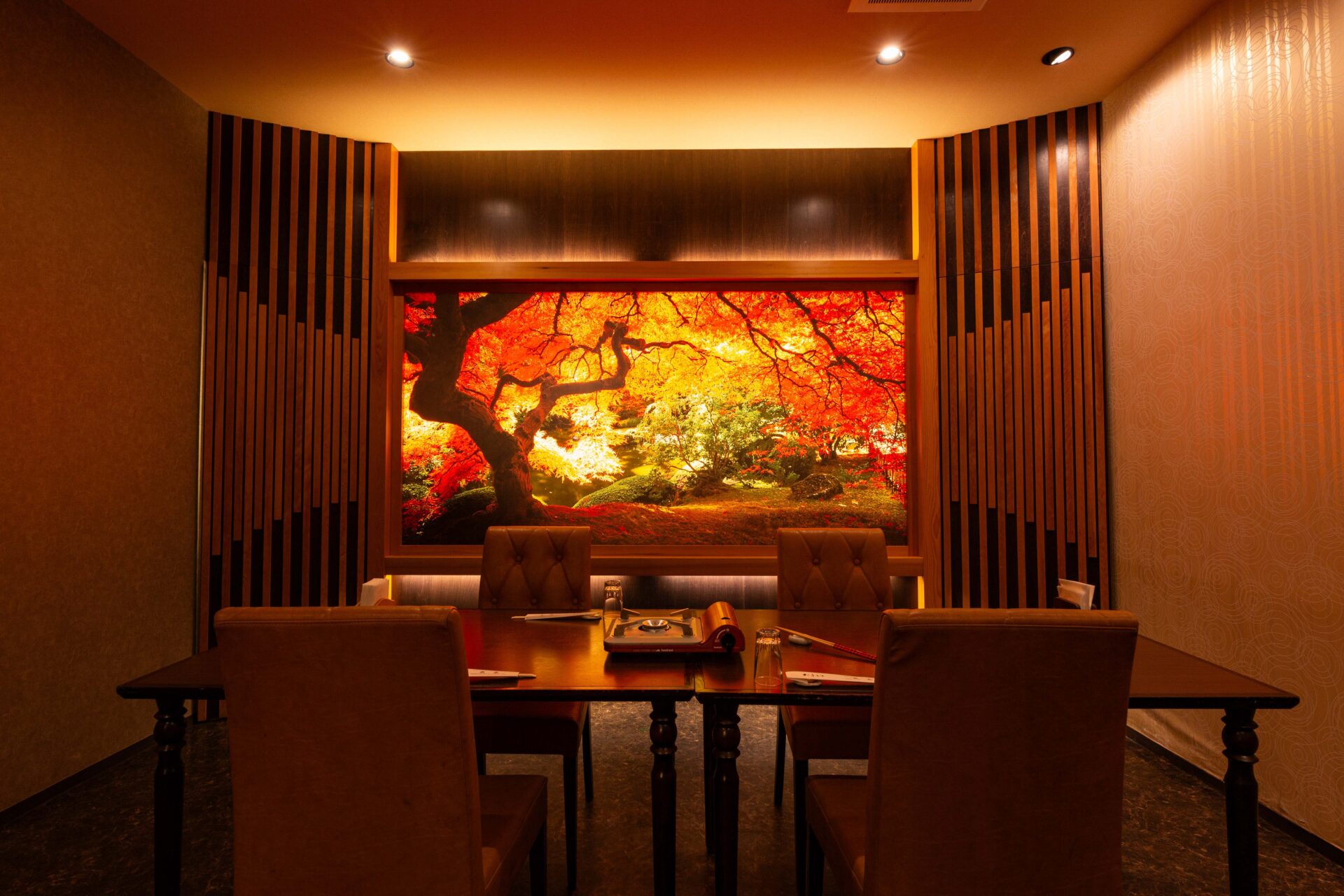 席へ足を進めるたびに感じられるのは、重厚でありながら肩の力が抜けるような安らぎ。特別な会食から、ご家族でのひとときまで、どんな時間にも寄り添える“上質な和の静けさ”を備えた空間をご用意しています。