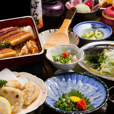 魚長では、季節の会席を中心に、鮮魚料理や煮物・焼物など幅広い和食をご提供しております。その中で、広島では比較的出回ることの少ない うなぎ料理 や ふぐ料理 も