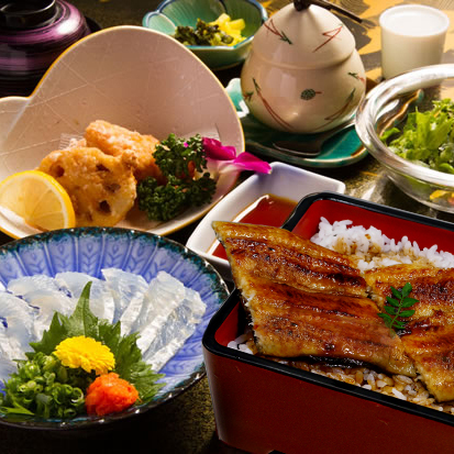 ※うなぎの満腹セットとふぐ刺しと釜飯の得々セット(旧魚長ランチ)はランチ、ディナー兼用価格になります。
