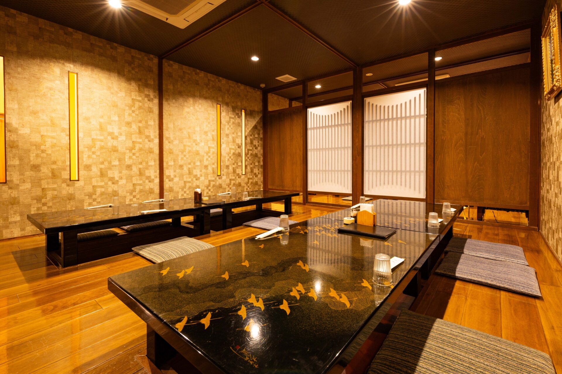 席へ足を進めるたびに感じられるのは、重厚でありながら肩の力が抜けるような安らぎ。特別な会食から、ご家族でのひとときまで、どんな時間にも寄り添える“上質な和の静けさ”を備えた空間をご用意しています。