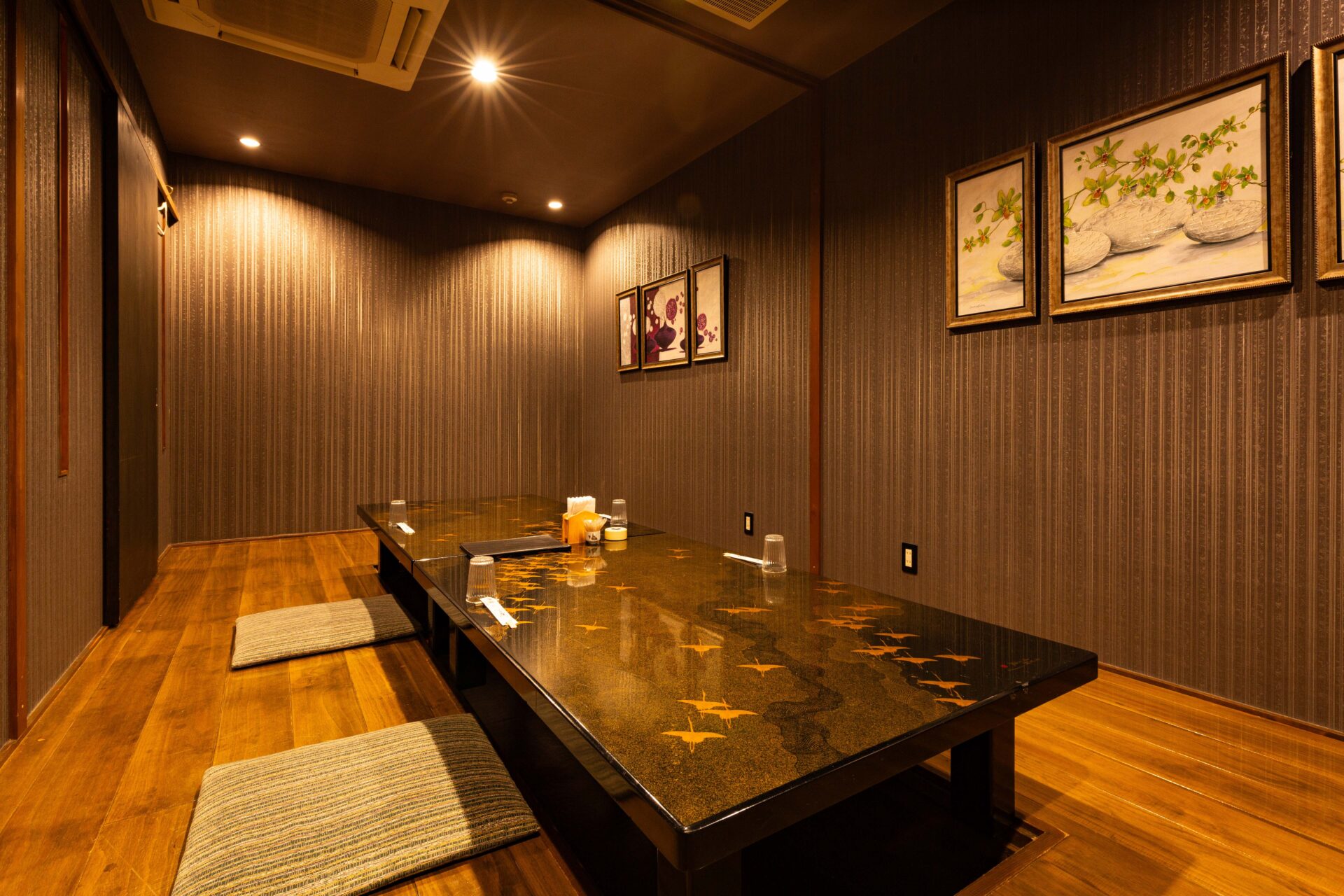 各種ご宴会だけでなく結納・顔合わせにもおすすめな個室掘りごたつ席。シックで落ち着いた雰囲気です。